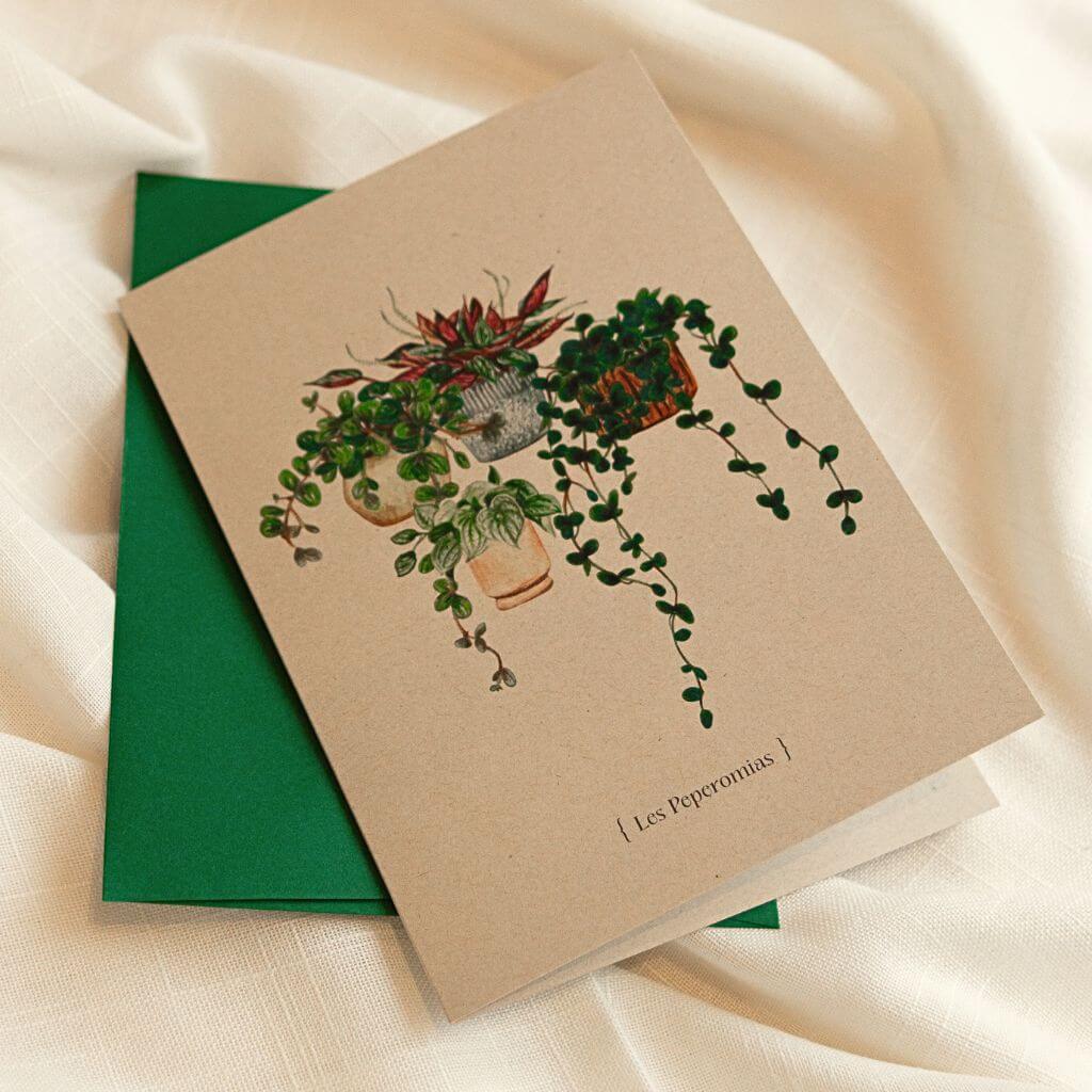 Carte illustrée à la main, imprimée sur papier cartonné de l' une gamme ENVIRONNEMENT , Fabrication de fibres sélectionnées et transformées pour un fini haut de gamme.