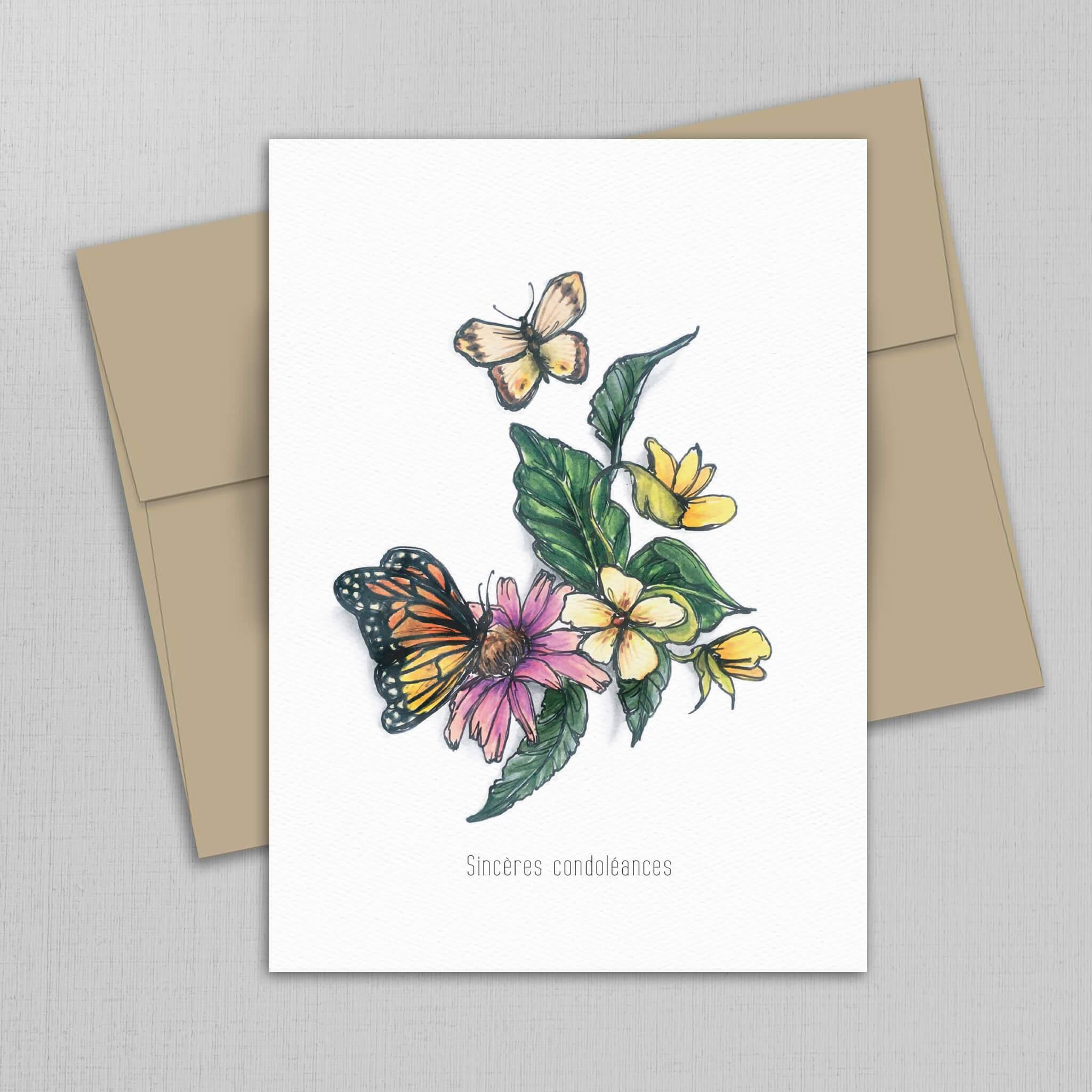 Texte intérieur : Un être cher s’est envolé. Nous partageons votre tristesse et pensons à vous en ces moments difficiles.