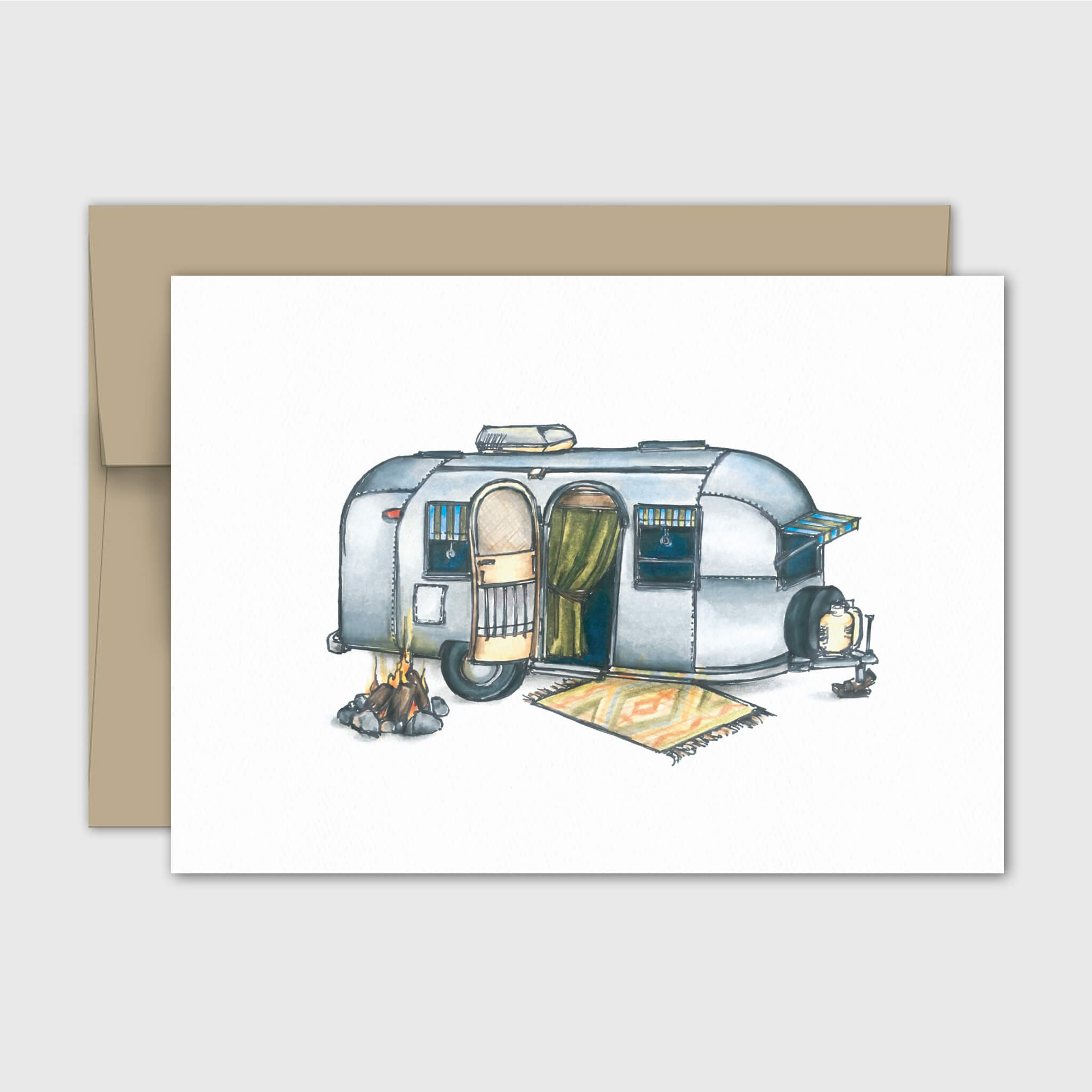 Carte sans texte, illustration roulotte vintage .